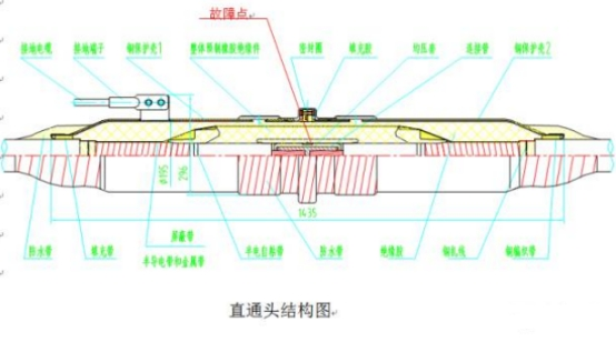 9797cc彩票 由于预制中心头半导电层脱碳,加上过盈量太小,为1mm,导致界面压力缺少,而爬穿。
