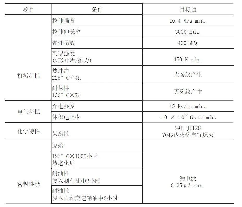 9797cc彩票 为了防止PVC线在热收缩过程中发生热降解,必须将过程温度控制在100°C或更低。为了满足上述要求,我们在自动收缩机中测量了最大加热温度和时间,发现可以将管道加热到135°C持续一分钟。将管道加热到此温度时,其外层必须完全收缩,而内层则需要流动并符合被遮盖对象的不规则外部轮廓。另一方面,在125°C的使用温度下,要求管道显示出适当的绝缘和密封性能,同时又不使管道和粘合剂位移。表2和表3分别显示了用于新管的材料的开发目标及其目标特性。