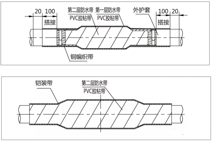 (4)电缆外护套两端防水,防止接头两侧环境潮气进入