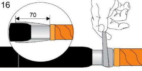 1)在反应力锥及电缆线芯导体位置绕包578#线芯堵水材料,用于防止电缆线芯进水或潮气后进入搭接面。