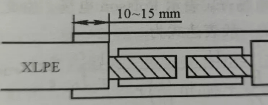 对于高压XLPE绝缘电缆的附件装置,亦有必要仔细考虑回缩问题,一般在加热校直的同时消除XLPE内的应力,因为高压缆接头中不可能制造出屏蔽结构,接头中任何一点的XLPE回缩都会给接头带来致命的缺点,即气隙(见图3),该气隙内产生部分放电,将会导致接头击穿。